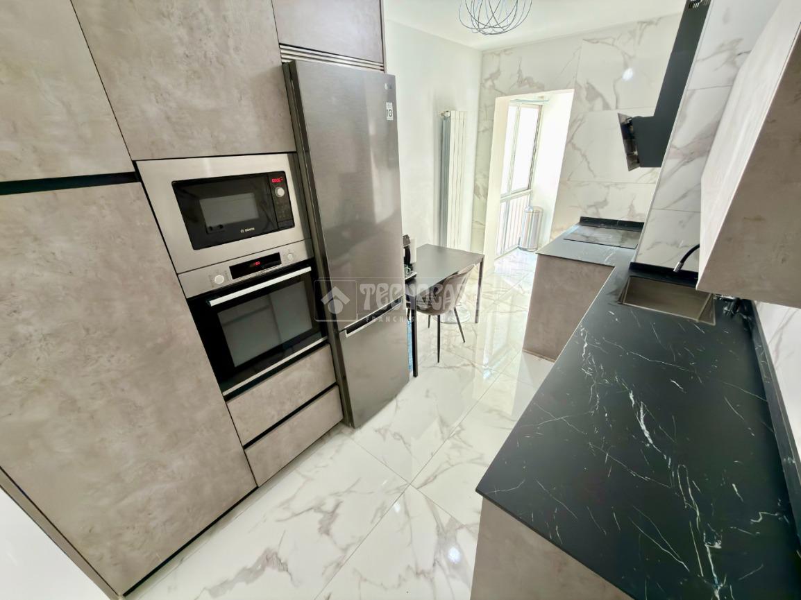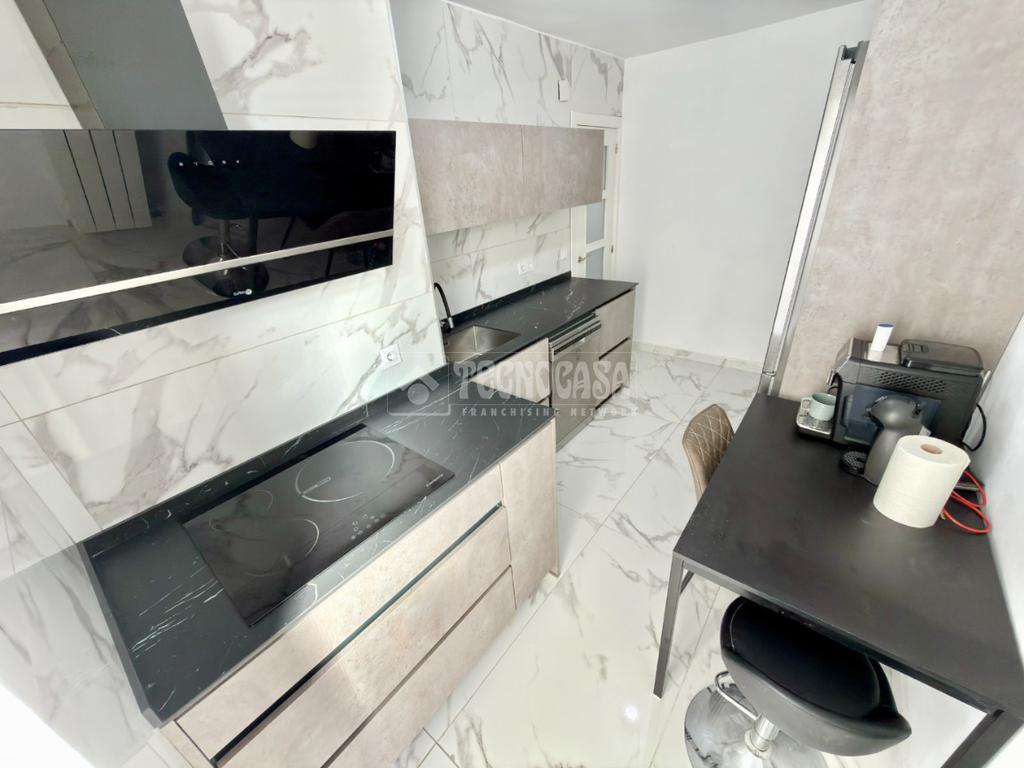 A mano derecha encontramos una magnífica cocina de diseño de aproximadamente 10 m², completamente amueblada y equipada, lista para entrar a vivir. Un espacio cómodo y práctico, pensado para el día a día.