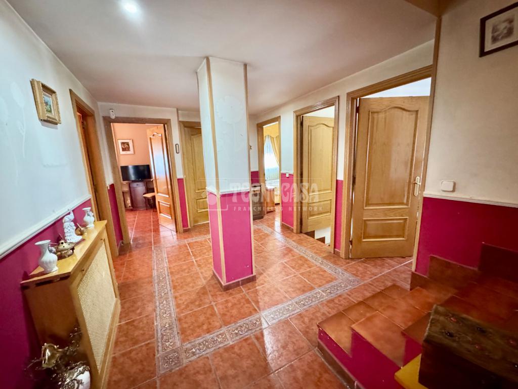 La vivienda se compone de tres plantas. En la planta baja, según accedemos nos encontramos con un porche cerrado de 14,13 m² el cual precede a la entrada al inmueble. Nada más entrar disponemos de un generoso pasillo distribuidor el cual nos da acceso a todas las estancias de esta planta.