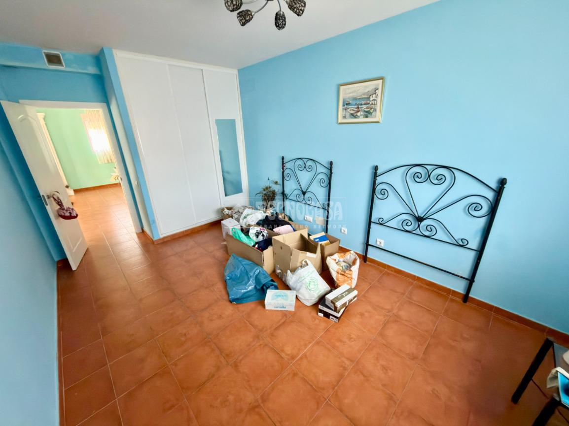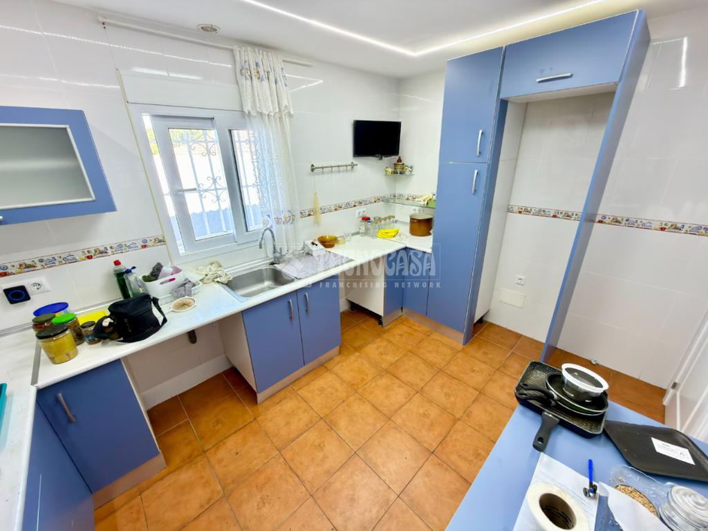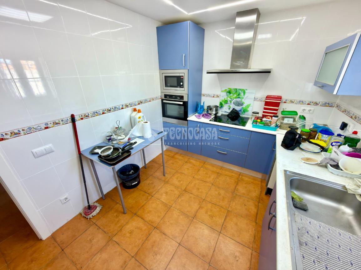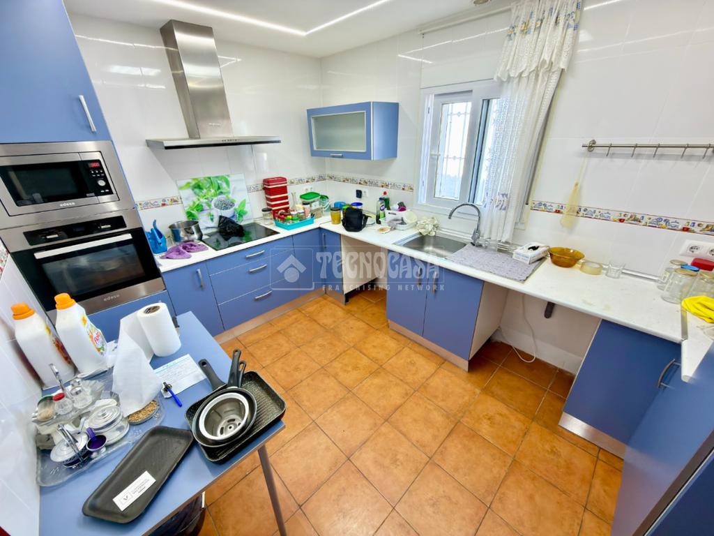La vivienda, de 124 m² en una sola planta, dispone de entrada cerrada que mejora el aislamiento, amplio salón-comedor con estufa de pellet canalizada, cocina actualizada con buena luz natural, tres dormitorios dobles con armarios empotrados y baño completo con plato de ducha y ventana exterior.